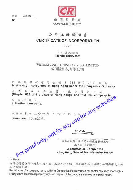 • La CINA Shenzhen Wisdomlong Technology CO.,LTD Certificazioni
